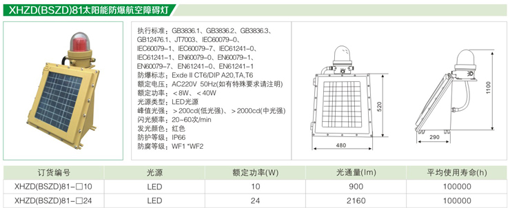 產(chǎn)品中心 防爆免維護(hù)節(jié)能LED燈 XHZD(BSZD)81太陽能防爆航空障礙燈